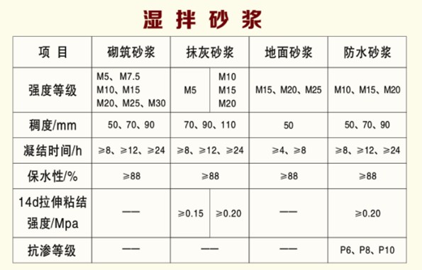 濕拌砂漿性能指標